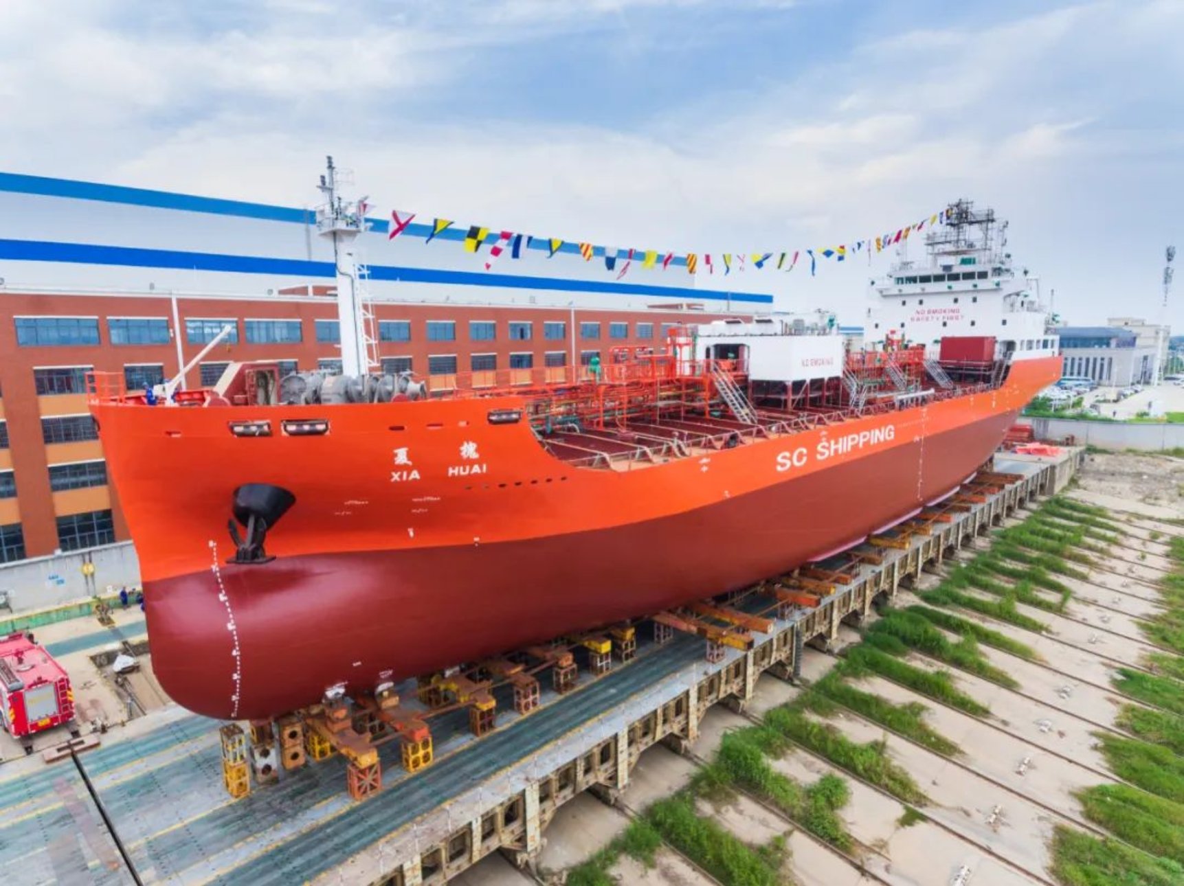 9月19日上午,由武昌造船為上海君正船務(wù)有限公司建造的 7200DWT化學(xué)品船3號船離廠,7200DWT化學(xué)品船4號船下水,不斷吹響保交船攻堅戰(zhàn)的勝利號角.上海君正船務(wù)有限公司監(jiān)造部部長劉仁杰,武昌造船黨委委員、副總經(jīng)理田軍及相關(guān)單位人員出席下水和送船活動。