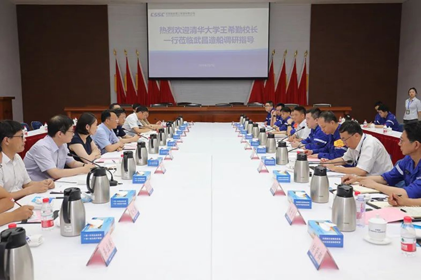 7月7日,清華大學校長王希勤一行蒞臨中國船舶集團武昌造船調研交流。公司黨委書記、董事長姜濤,黨委副書記、總經(jīng)理梁師清及相關部門負責人參加調研。王希勤一行先后參觀了公司廠史館、生產(chǎn)建造一線,詳細了解了公司的改革發(fā)展歷程和裝備研制進展,聽取了在研任務和校企合作的有關介紹。