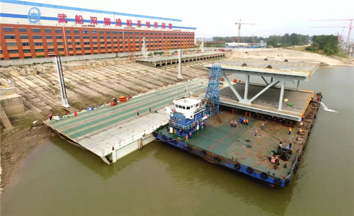 近日,由武船重工股份承建的楊泗港長(zhǎng)江大橋主橋鋼桁梁首節(jié)G24H分段成功裝船,將發(fā)運(yùn)至橋址進(jìn)行吊裝。