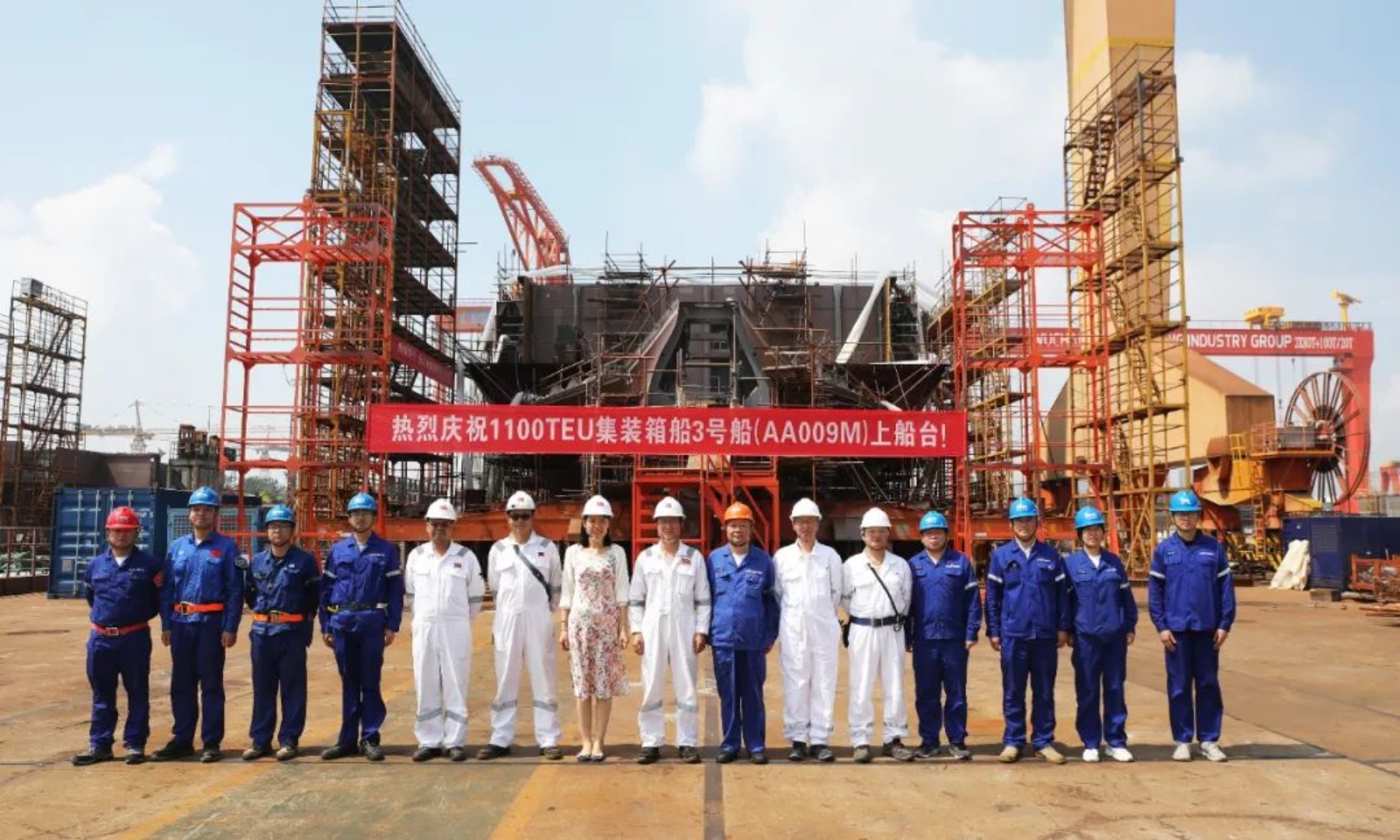 9月15日上午,由武昌造船承建的1100TEU集裝箱船3號(hào)船實(shí)現(xiàn)上船臺(tái)節(jié)點(diǎn),這是武昌造船錨定全年目標(biāo)任務(wù)不放松,有序推進(jìn)生產(chǎn)節(jié)點(diǎn)取得的又一階段性成果。船東、船檢及相關(guān)單位領(lǐng)導(dǎo)參加儀式。
