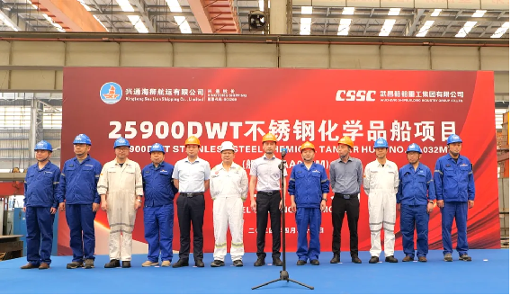 4月23日10點(diǎn)38分,由中國(guó)船舶集團(tuán)武昌造船為興通海運(yùn)股份有限公司下屬子公司興通海獅航運(yùn)有限公司建造的25900載重噸不銹鋼化學(xué)品船1號(hào)船正式開工。興通海運(yùn)股份有限公司副總裁陳其德一行及現(xiàn)場(chǎng)監(jiān)造團(tuán)隊(duì),美國(guó)船級(jí)社,武昌造船黨委委員、副總經(jīng)理田軍及公司各部門相關(guān)負(fù)責(zé)人參加開工儀式。
