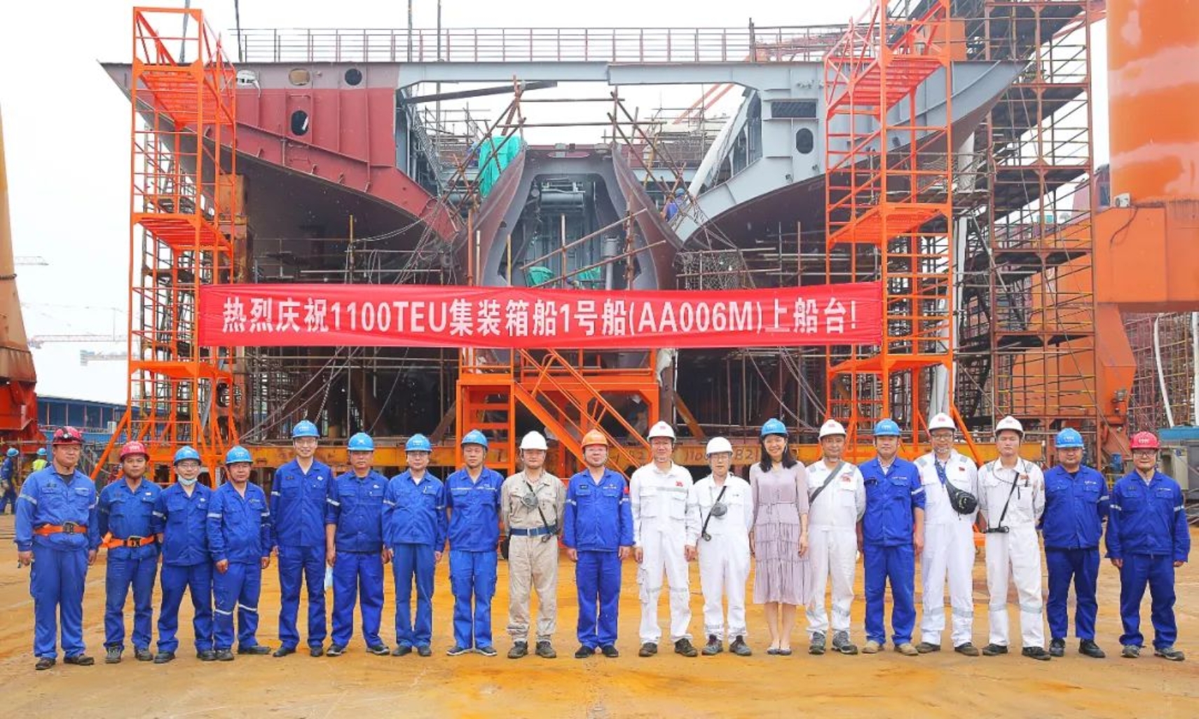 5月16日上午11時(shí)18分,武昌造船為CA Shipping建造的1100TEU集裝箱1號(hào)船在雙柳廠區(qū)順利上船臺(tái),在船舶完整性良好的前提下實(shí)現(xiàn)計(jì)劃節(jié)點(diǎn)提前9天完成。